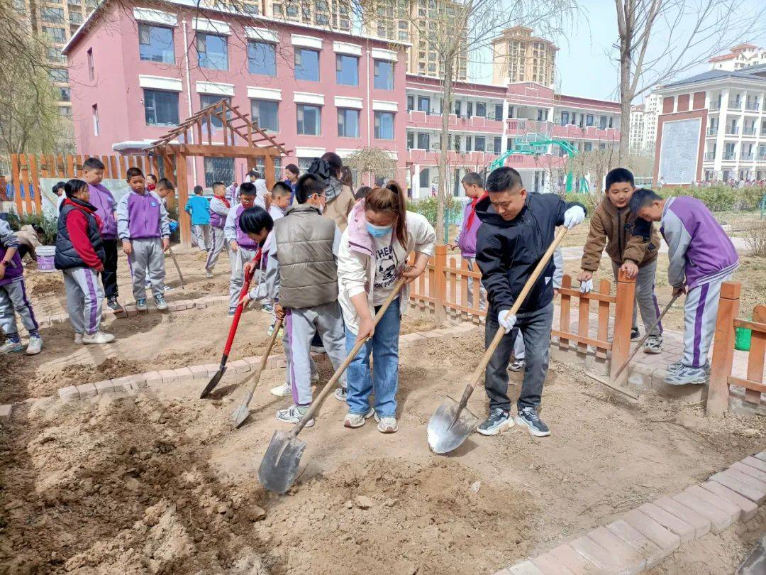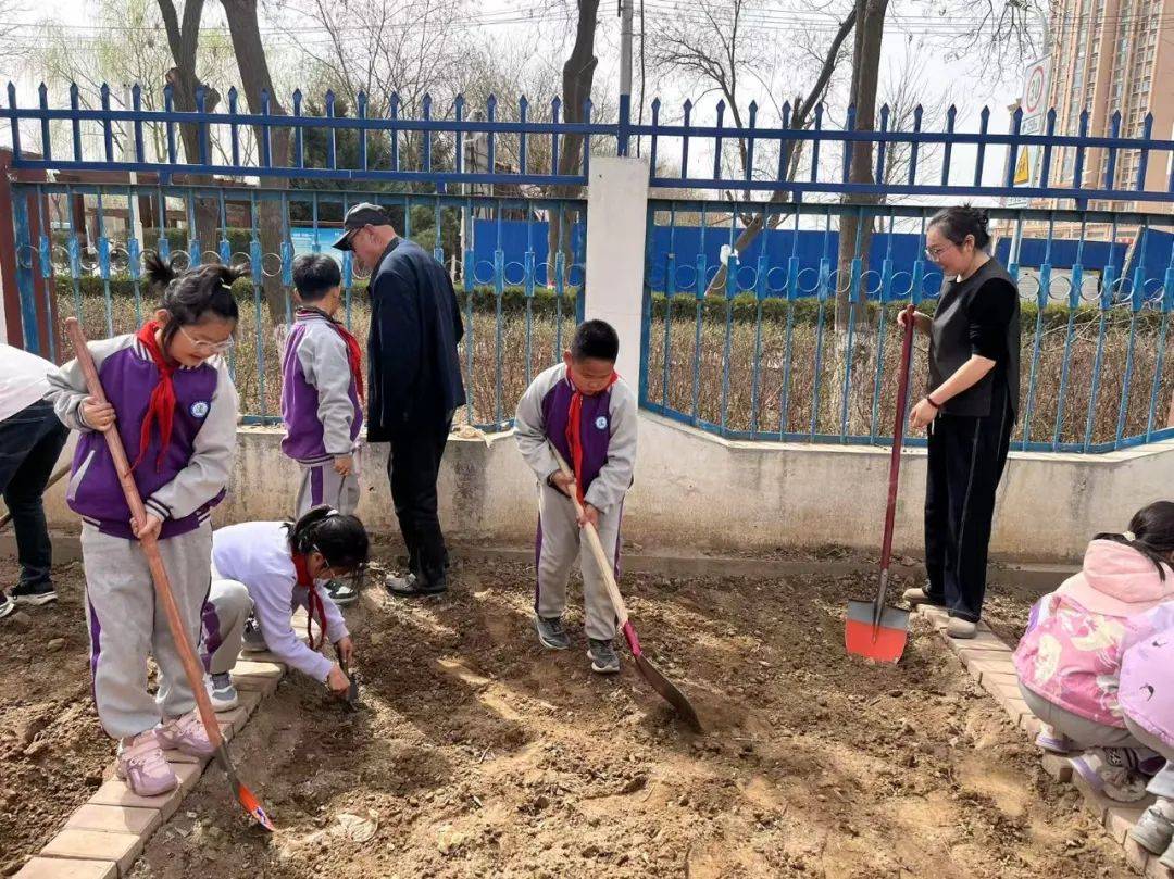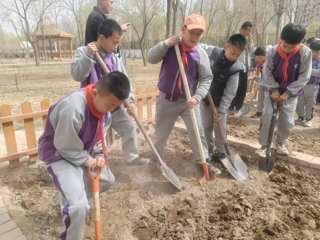 开耕典礼竣事后,耕种勾当正式拉开帷幕。本次劳动实践共有20块地,从南到北顺次分派给三年级1班至五年级6班。下战书第一节课,各班同窗正在班从任的率领下,有序来到本人的“义务田”。每班选派5名同窗参取耕种,还有1名家长参加指点,确保耕种过程规范、科学。