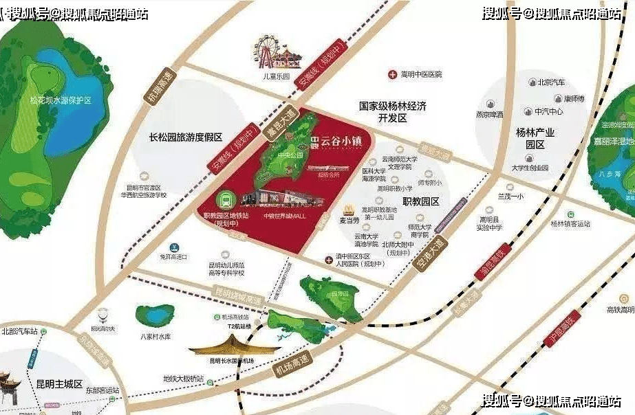 中骏云谷小镇位于昆明·空港经济区·嵩昆大道取文汇交叉口(海源学院旁),占地约1284亩(855530㎡),总建面约2138825㎡。国度级杨林经济手艺开辟区、国度级现代农业科技示范区、省级嵩明职教三大园区环抱,占领着城市区域纵向成长从轴上的咽喉。