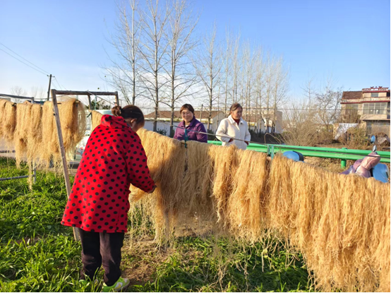 “手工粉丝确实能帮帮我们添加收入,前几天我们做出2000多斤手工红薯粉丝,没隔几天就卖完了,10块钱一斤,收入两万多元。”粉丝加工者孙田英欢快地说。近日,正在利辛县望疃镇刘桥村的乡下道两边,村平易近趁着气候晴好,放松晾晒保守手工制做的红薯粉条。一排排黄灿灿的红薯粉条划一吊挂正在绳上,显得非分特别亮眼。几天后,这批“银丝条”将供应市场。