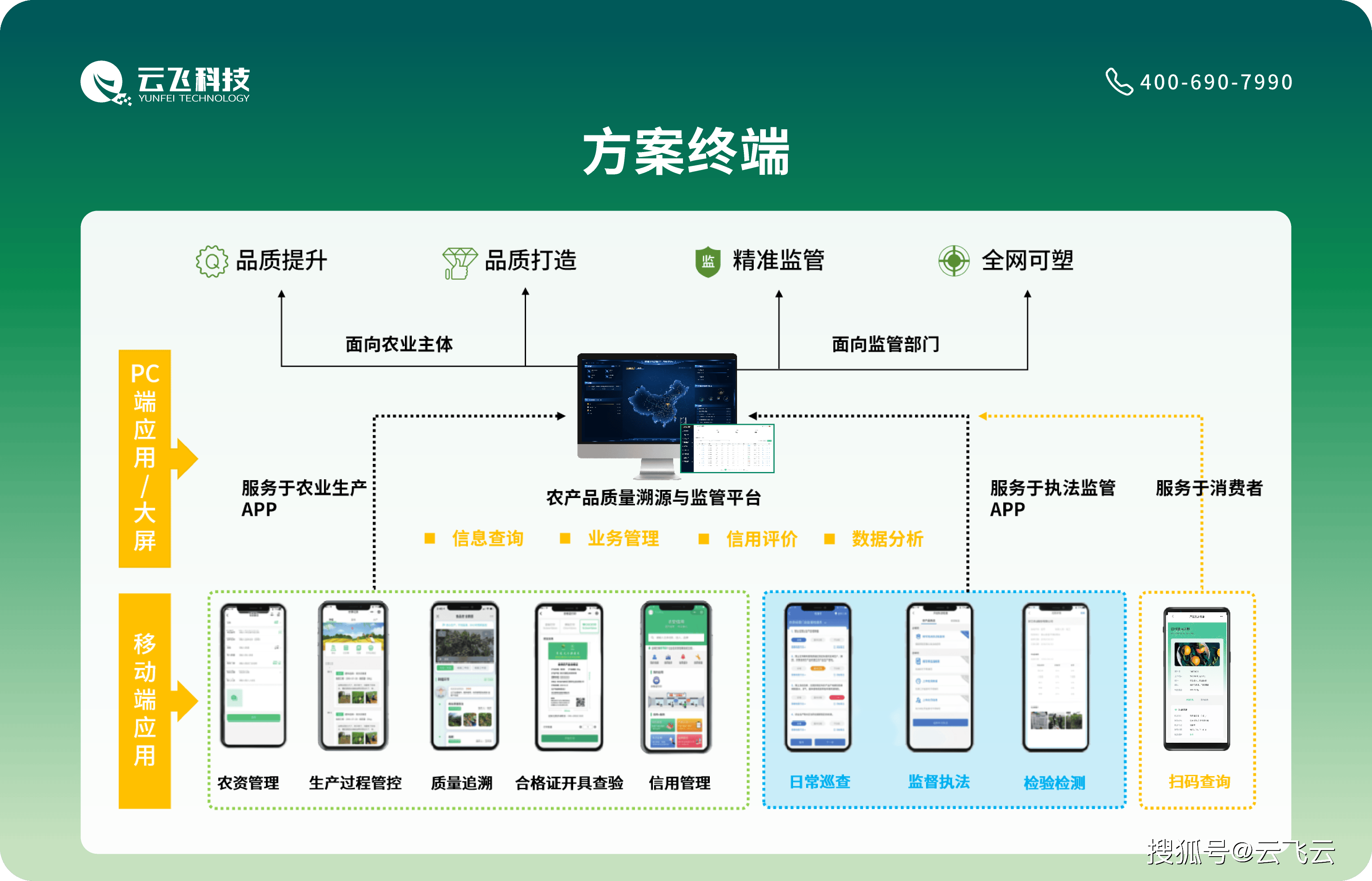 农产物逃溯系统次要由 “一个核心和三大模块” 形成 。一个核心即逃溯云端数据核心,它好像整个系统的大脑,担任数据的汇总、存储、阐发取办理。三大模块别离面向出产者、监管部分和消费者。