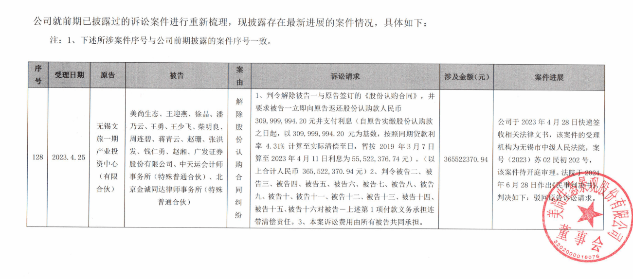 公司于2024年10月14日正在全国股份让渡系统官网披露了本诉讼案件,通知布告编号2024-054。因被告变动了告状对象和诉讼请求,需从头对外披露该诉讼案件最新进展环境。